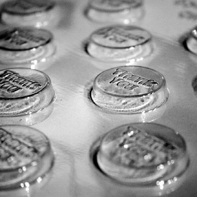 コイン状の表面に、Thank Youの文字が凸されてるチョコレート型。