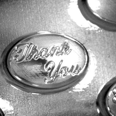 Thank Youの筆記体文字が凹状で刻印されている、楕円のチョコレート型。