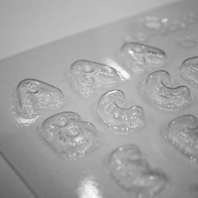 | 素材 | ポリエチレン(耐熱温度65度)下敷きのような素材なのでカタチによって真っ平らにはならず、机でカタカタいう場合がありますが、凹みに入れたチョコが流れ出ませんので良品となります。 |
