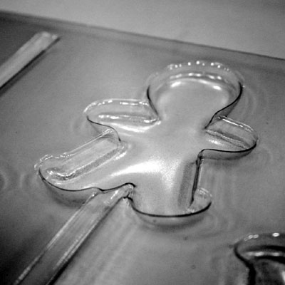 シンプルなジンジャーマンのシルエットの棒つきチョコができる型。