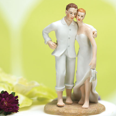 二人とも裸足でビーチにいる設定のケーキ飾りです。