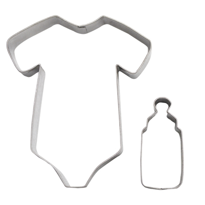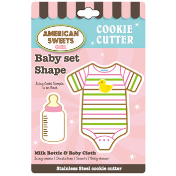 American sweetsシリーズのベビー服のクッキー型と、服にあわせたベイビーボトル(哺乳瓶)のセットです。