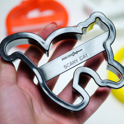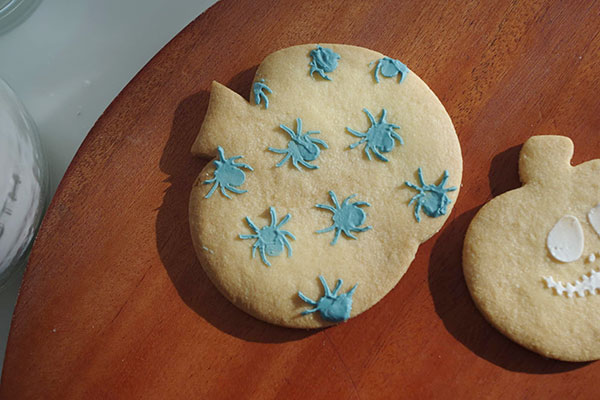 あと、ステンシルで柄をつける場合、少し大きめなクッキー型を使ったほうが柄が出しやすいので、この大きさはオススメです♪(クモのステンシルはこちら)