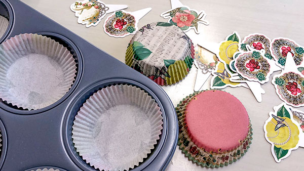 ローズとチョウチョのベーキングカップはレトロな色味が魅力的で、大人っぽいテーブル作りに向いていますし...