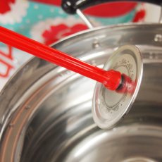 日本はフルーツが高価ですし、後から腐ったらショックすぎますし... 蓋を手で触って菌が着いたら最悪なので、先端に磁石のついた棒で、熱湯から拾い上げます。