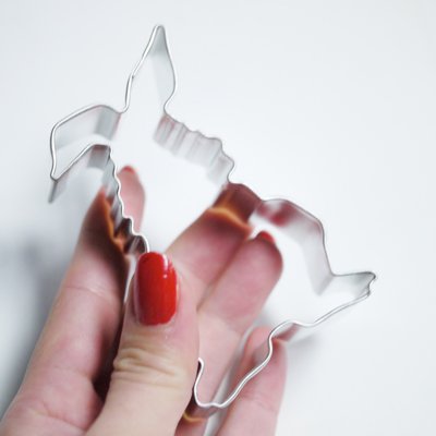 うさぎのクッキー型ですが、片方耳が折れていて、フェイスラインがフワフワした感じにギザギザしている、海外のウサギって感じのクッキー型です。