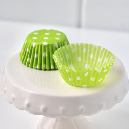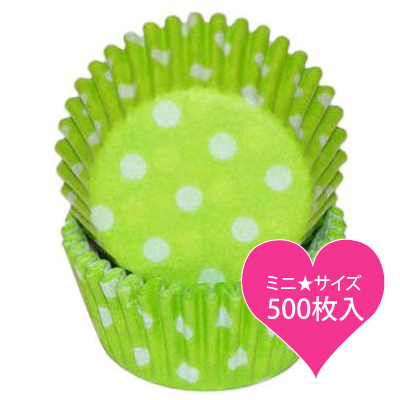 ミニ★ベーキングカップお徳用500枚入のライムグリーン×白ドットです。