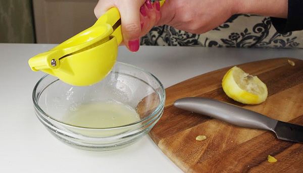 半分にカットしたレモンを挟み、皮の香りも一緒にレモン果汁を絞ることのできる「レモンスクイーザー」です