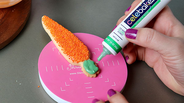 アイシングシュガーを緑で着色して葉っぱを描いてもいいけど、面倒だったらチョコペンのグリーンで...