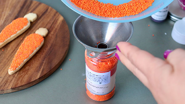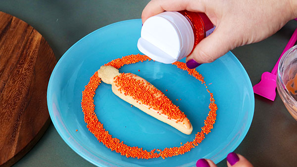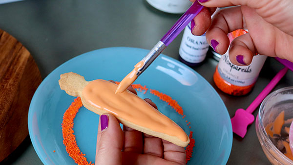 もし、絞り袋と口金でアイシングするのが難しいなら、アイシングシュガーにオレンジ着色料をちょびっと混ぜて...