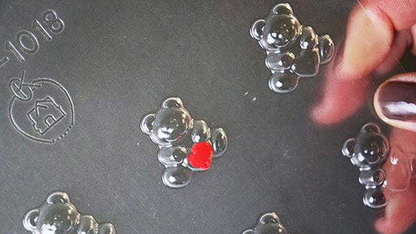 米国CK社のチョコ型は透明なので、凸側(完成したときみたい側)からチェックすることができます。少しハートが歪かも... と思ってもヘコまず、手早く作業てね(室温が低過ぎるとすぐに固まるので20度前後だとgood!!!)