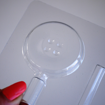 ボタンのロリポップチョコを作る、チョコレート型。シンプルなボタンのロリポップ型のチョコレートが作れます。
