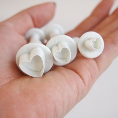 サイズ違いの小さなハートの抜き型、3サイズのセットです。