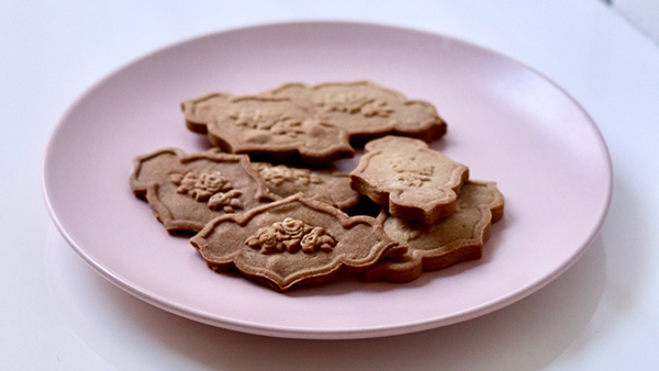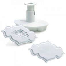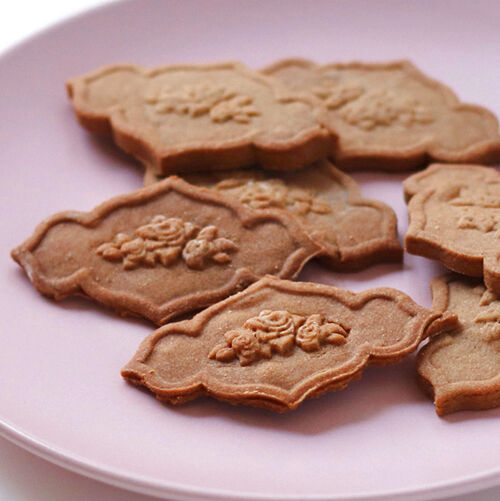 フォンダン生地を抜くためのシュガークラフトアイテムで、抜いたあと、後ろの部品を押すとポンっとでてきます。(下写真はスパイスクッキーに使ってみたもの)