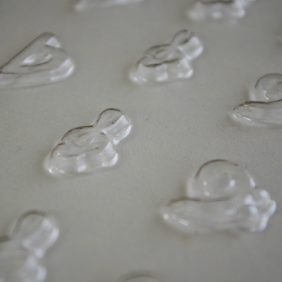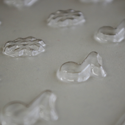 | 素材 | ポリエチレン(耐熱温度65度)下敷きのような素材なのでカタチによって真っ平らにはならず、机でカタカタいう場合がありますが、凹みに入れたチョコが流れ出ませんので良品となります。 |