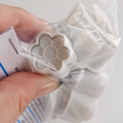 抜いたあと、後ろの部品を押すとポンっとでてくるので、手や爪楊枝などで触りすぎて形を崩すのが心配な方に、プッシュ式の型は人気があります。困ってる方は試してみてはいかがでしょう♪