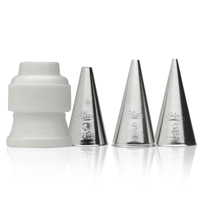 〒 Ateco 口金(ステンレス)ベーシック3種セット+取り替えキャップ [AT380]
