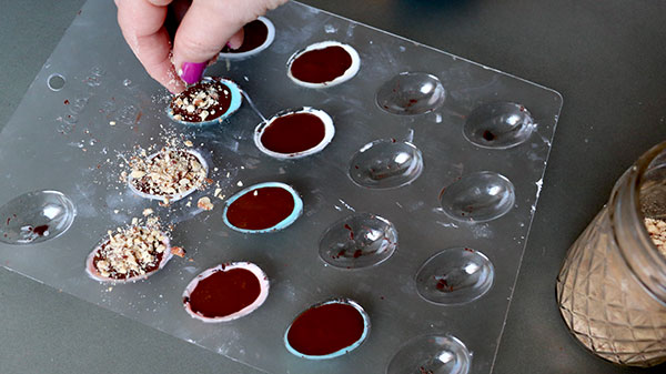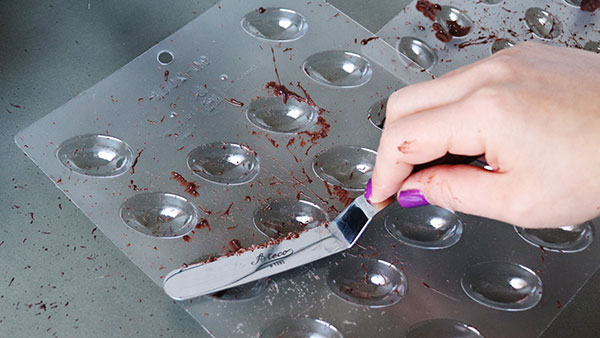 最後にチョコで蓋をするときは、凹み以外のチョコはパレットナイフでこそげとっておくと後々の作業がスムースになります。