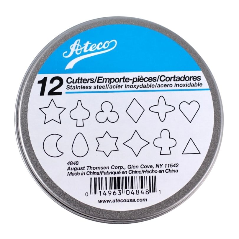 米国製菓道具ブランドAteco社の、ミニサイズの抜き型12個セット、専用缶入り。