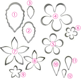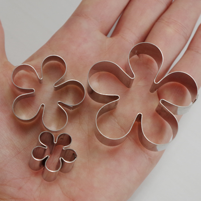 もともとこのセットはクッキー型というより、シュガークラフト向けのセレクトになっていて、サイズの違うお花や葉っぱがそろっていて、重ね合わせて使用することもイメージされています。