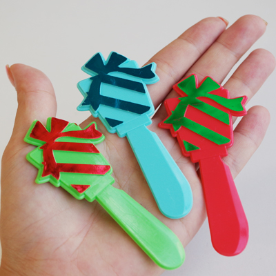 レッド、グリーン、ブルーの3色でピック部分がバターナイフみたいな形になっています。
