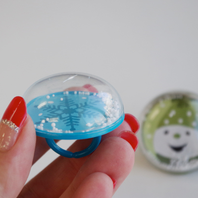 断面はドームのような形をした透明のプラスチックでそのドームの中に雪のようなパーツが入っています。