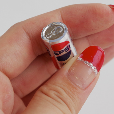 3種のジュース缶のピック。本物のようなラベルが貼ってあります。上部も缶のプルタブもあります。