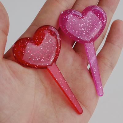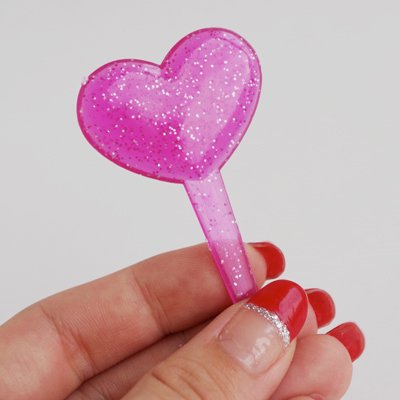 〒 ケーキピック/グリッターハート(レッド&ピンク・6本入)