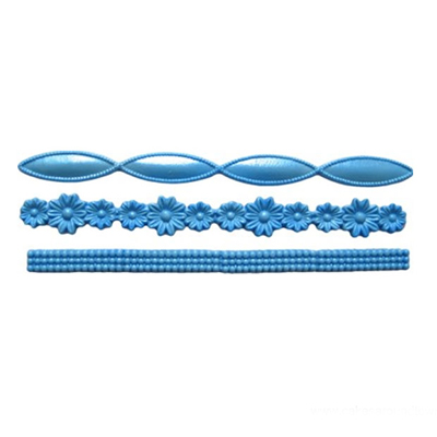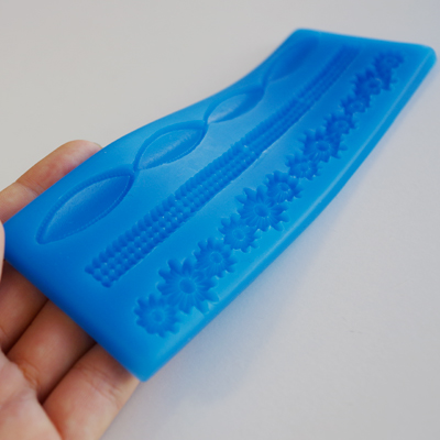細長い円が繋がったようなラインや、ビーズステッチのようなライン、あと大小のお花がちりばめられたラインができます。ケーキのサイドにかざるデコパーツ作りにいかがですか?