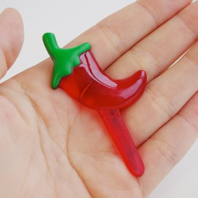 真っ赤なんだけど透明感のある唐辛子(チリ)のピック。スパイスのきいているお料理、メキシカンやアジアなど辛いもののデザートに刺してあげてもGOOD...