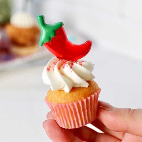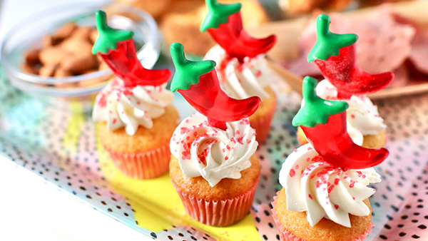 上写真はミニカップケーキ、存在感がでて可愛かったです(ちなみにクリームにチリをふりかけると味が怖いんで、赤いサンディングシュガーで雰囲気だけ辛そうな偽装ケーキです笑)