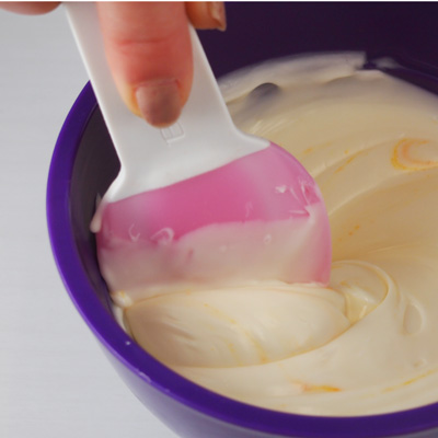 この商品の魅力は、材料をカップからかき出したり、すり切り時に使える「ゴムヘラ」が着いていること。シリコンのヘラなので、このカップを使わないときも、ちょちょっと混ぜるときなどに使えて、すごく便利です♪