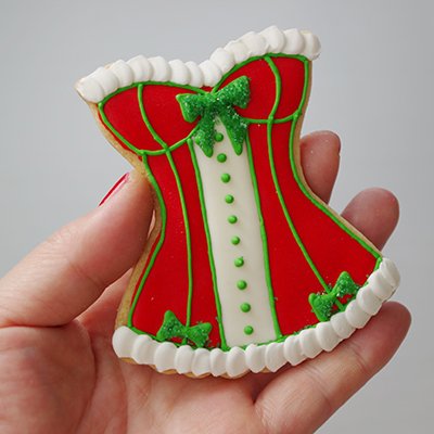 少しボリューミーなサイズ感があるので、細かなレースなどはシュガーベールなどのレースを貼付けて、かなりセクシーなアイシングクッキーに仕上げてみるのも面白いかなぁ?