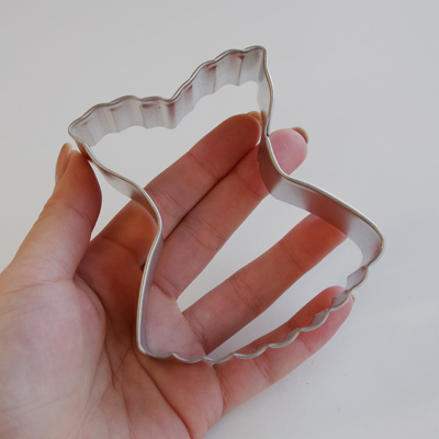 中央に編み上げラインをアイシングしたり、フリルをデコレーションしたり、カスタマイズしがいのある中級〜上級さんに喜ばれそうなクッキー型です。