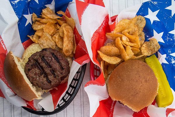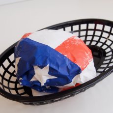 星条旗のハンバーガーペーパー、アメリカンフードの雰囲気を盛り上げてくれるデザイン。