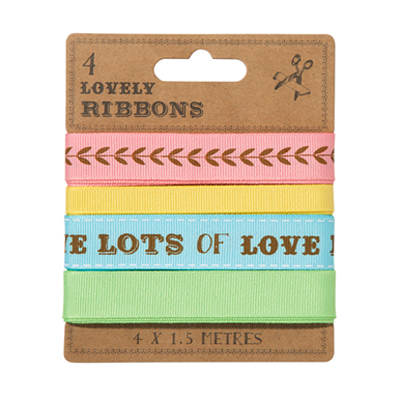 ピンク(葉っぱ柄)、イエロー、ブルー(Lot of Love柄)、グリーンの4種類が各1.5mのセットになってて、色の組み合わせがしやすいカラーバランスになってます。