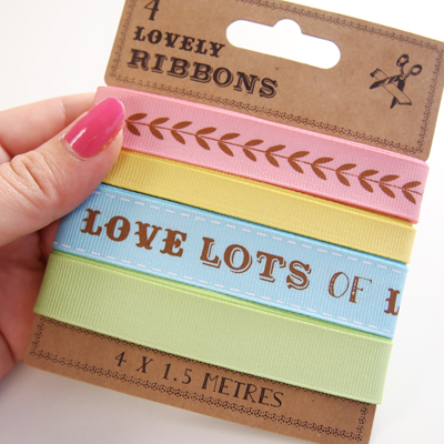 | サイズ | リボンの横幅が約ピンク:1.6、イエロー:1cm、ブルー:2cm、グリーン:1.6cm |