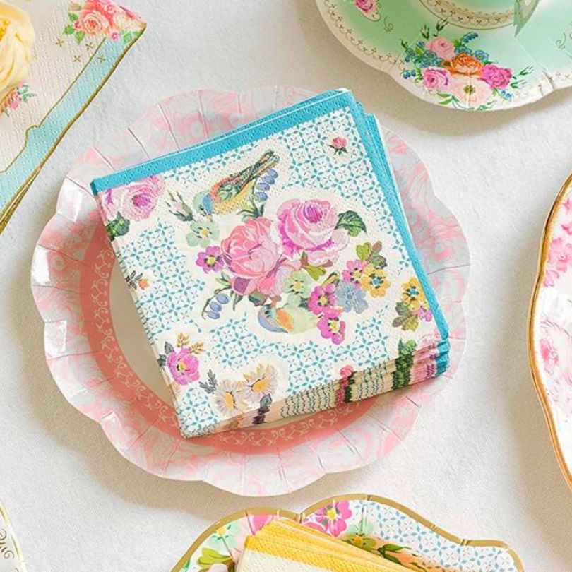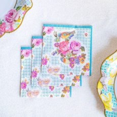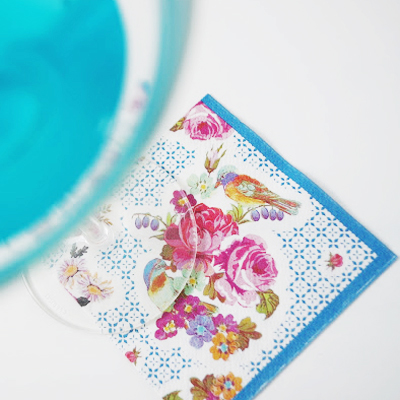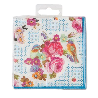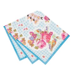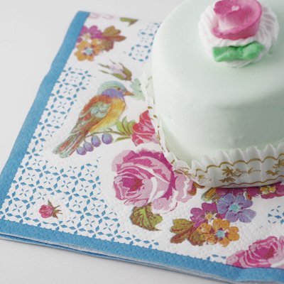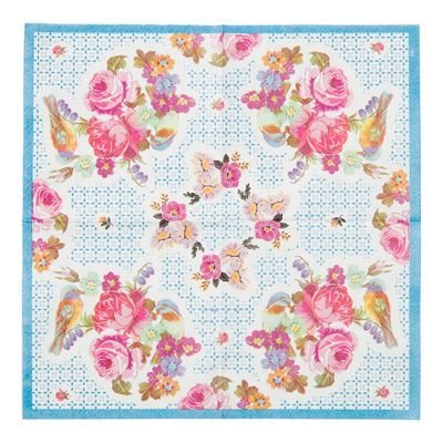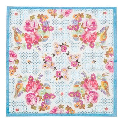 Talking Tables(トーキングテーブル)の紙ナプキン。明るくさわやかなブルーの柄にお花や小鳥がプリントされています。