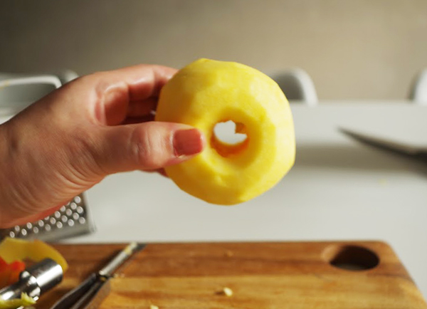 アップルパイを作るとき、他にはジャムなんかもそうだけど、沢山の林檎の皮をむいて準備をしなくちゃいけないでしょ。チンタラやってると茶色くなっちゃうし... たったこれだけで作業がスムーズになりました。