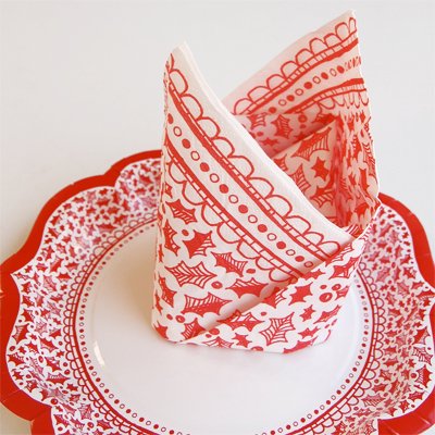 英国Talking Tables(トーキングテーブル) 紙ナプキンです。 クリスマスリーフがちりばめられたデザインで柄があまり邪魔しないのでスイーツからフードまで様々な用途でご使用いただけますよ。