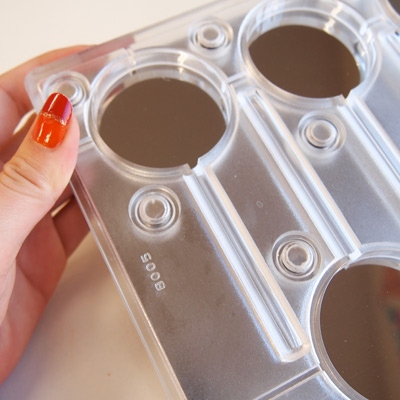 底板が磁石でくっついて、隙間に市販の転写シートを入れることのできるチョコレート型です。