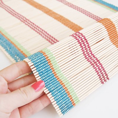 英国Talking Tables(トーキングテーブル)のランチョンマット。すだれのような素材でカラフルな糸が編み込んであります。
