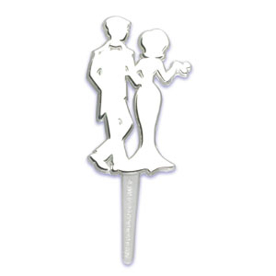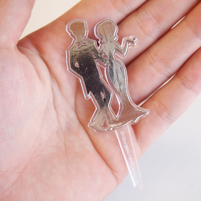 ミラーっぽいデザインのウェディングカップルのシルエットのピックです。