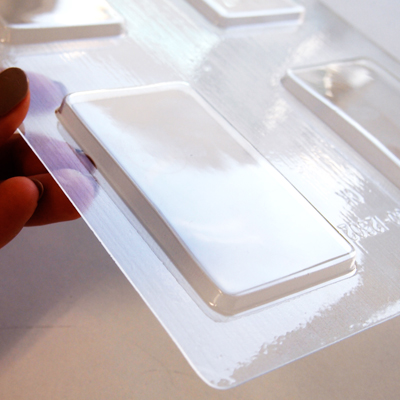 | 素材 | ポリエチレン(耐熱温度65度)下敷きのような素材なのでカタチによって真っ平らにはならず、机でカタカタいう場合がありますが、凹みに入れたチョコが流れ出ませんので良品となります。 |