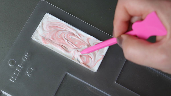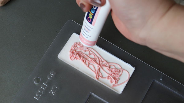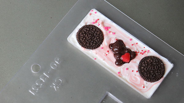 極めてシンプルなので、文字を描いたり、別のチョコ型で作った小さなパーツを貼付けたりして自由にデコレーションできます。
