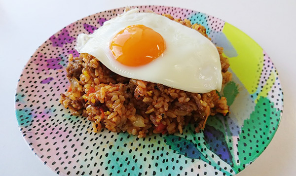 例えばジャンバラヤを作ったとき。お皿の一部にグリーンが入ってたり、モードの色や模様が混じり合っていて華やかになったし...