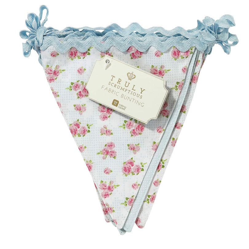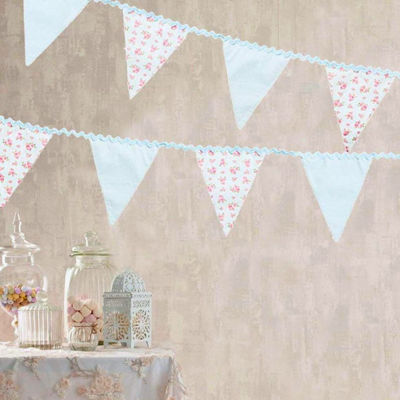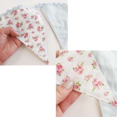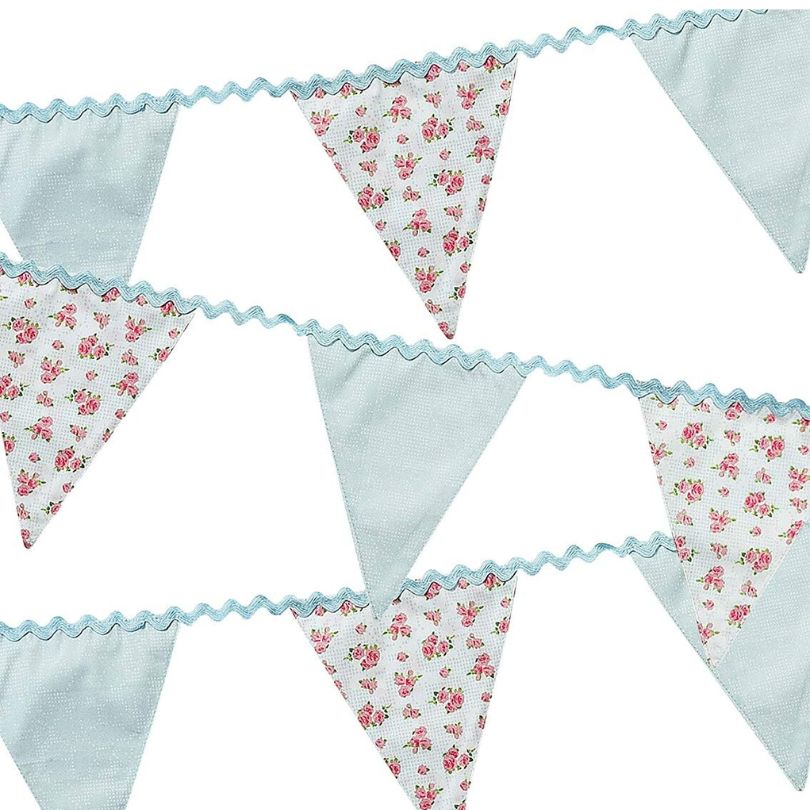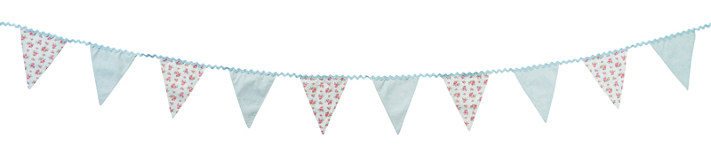 さわやかなブルーとに英国らしいイングリッシュローズのプリントされたペナントが交互についています。