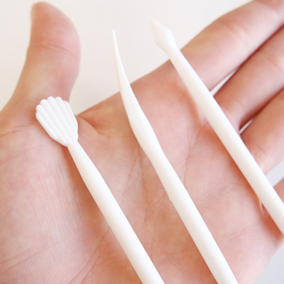部分的に筋をつけたり、花びらのように凹みやカーブをつけたり、細かい細工をするための道具です。