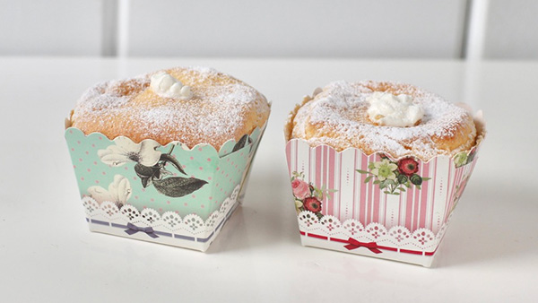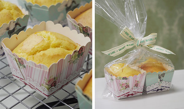 ベーキングカップのようにマフィンパンに入れないと生地の重みで広がってしまいますが、これは単独で自立しますから、マフィンパンをお持ちでない方はこのカップのほうがおススメ。