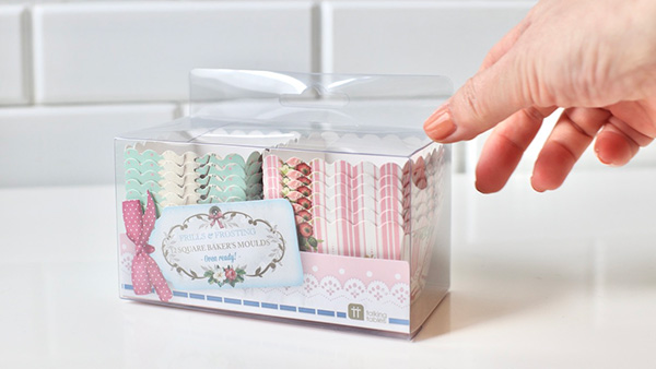 英国Talking Tables(トーキングテーブル)のスクエアー型のケーキ型、このカップは、ケーキ生地を入れてそのままオーブンに入れて焼くことができます。
